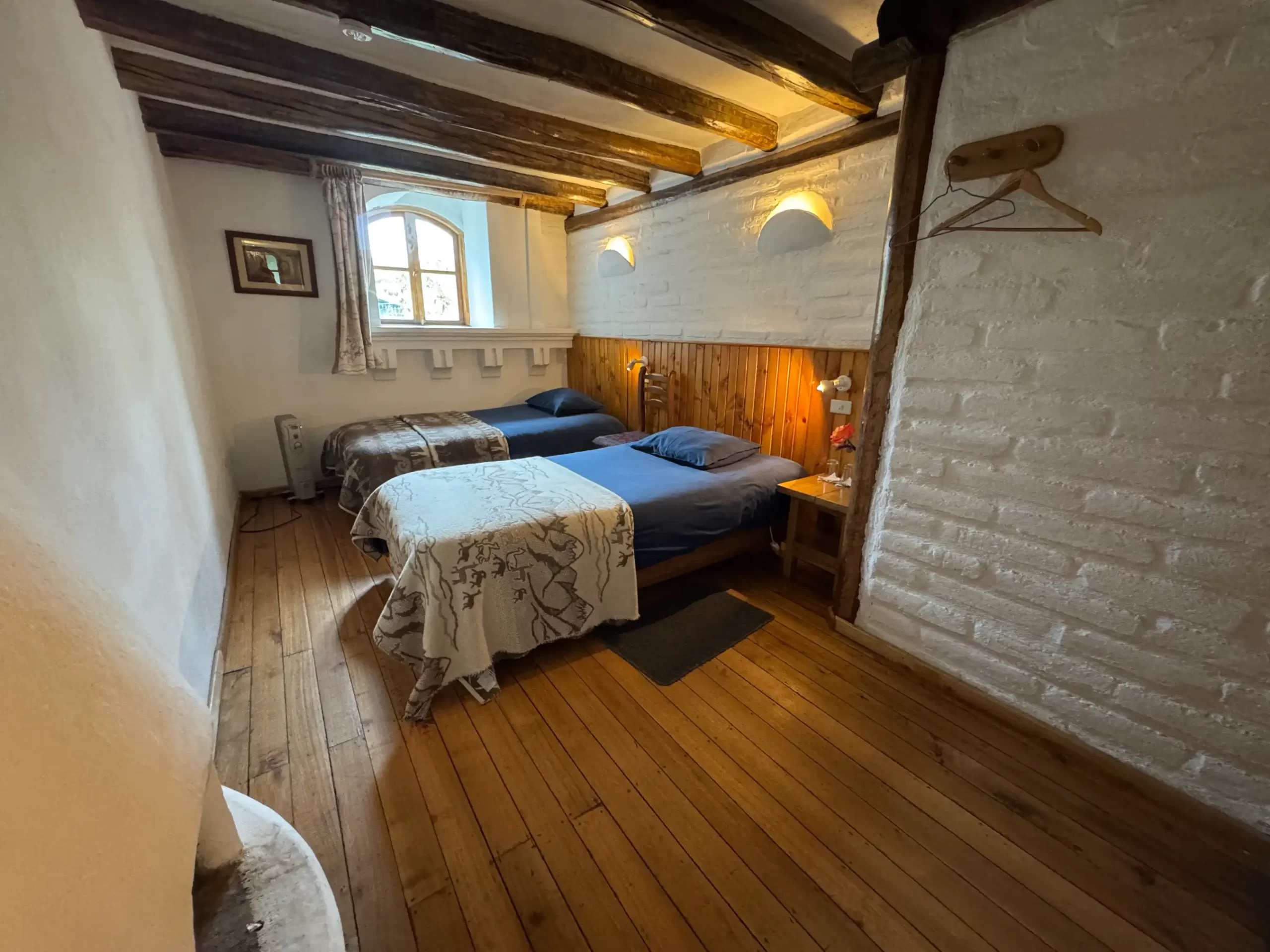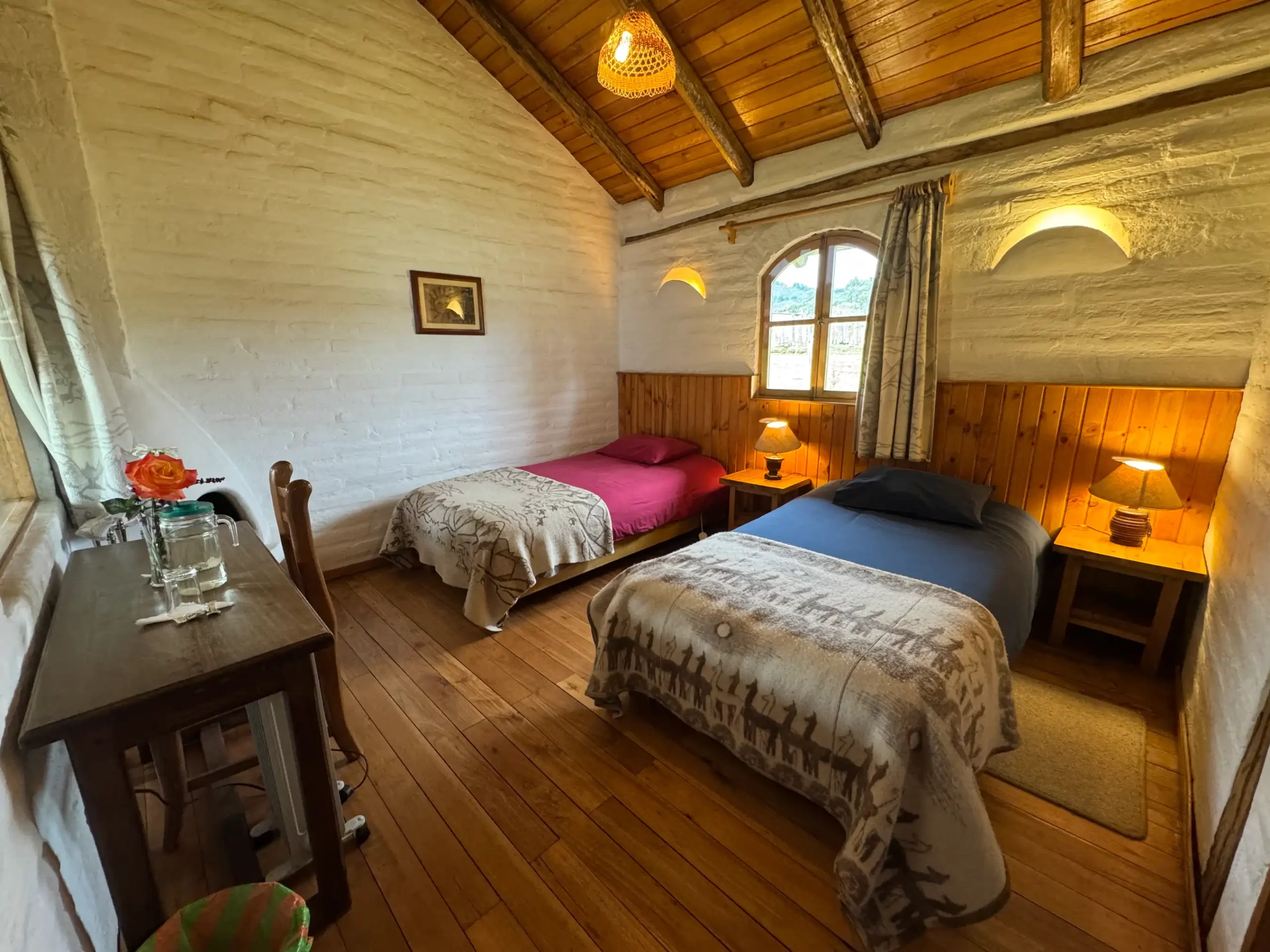 Nuestra habitación doble estándar ofrece un espacio acogedor y rústico, ideal para descansar después de un día de aventura. Está equipada con una cómoda cama de plaza y media con calientacamas eléctrico, chimenea abierta para mantener el ambiente cálido, baño privado con ducha de agua caliente y todos los servicios esenciales. Disfruta además de WiFi satelital y agua potable filtrada y ozonizada, todo pensado para brindarte confort y tranquilidad en Cuello de Luna.