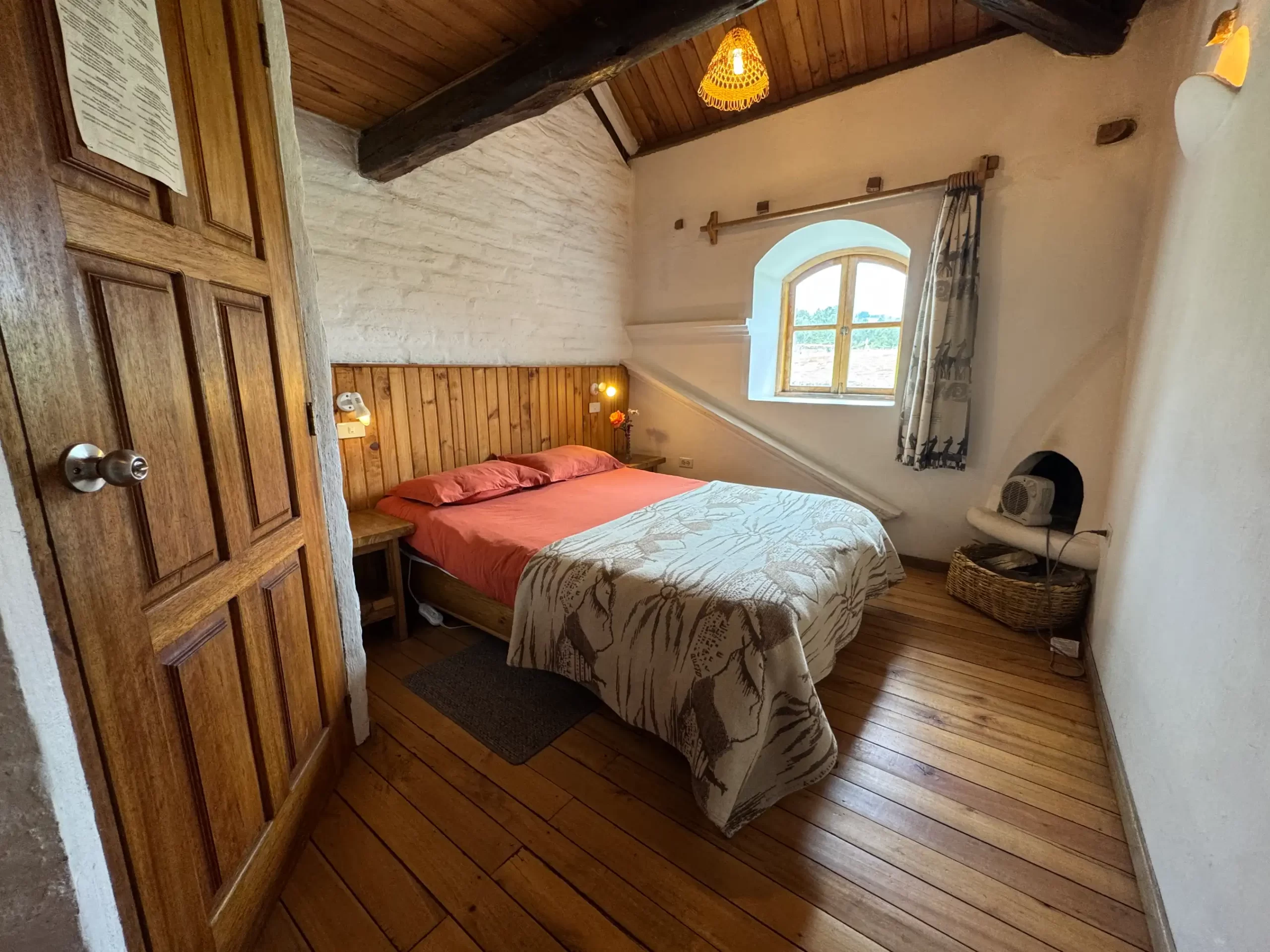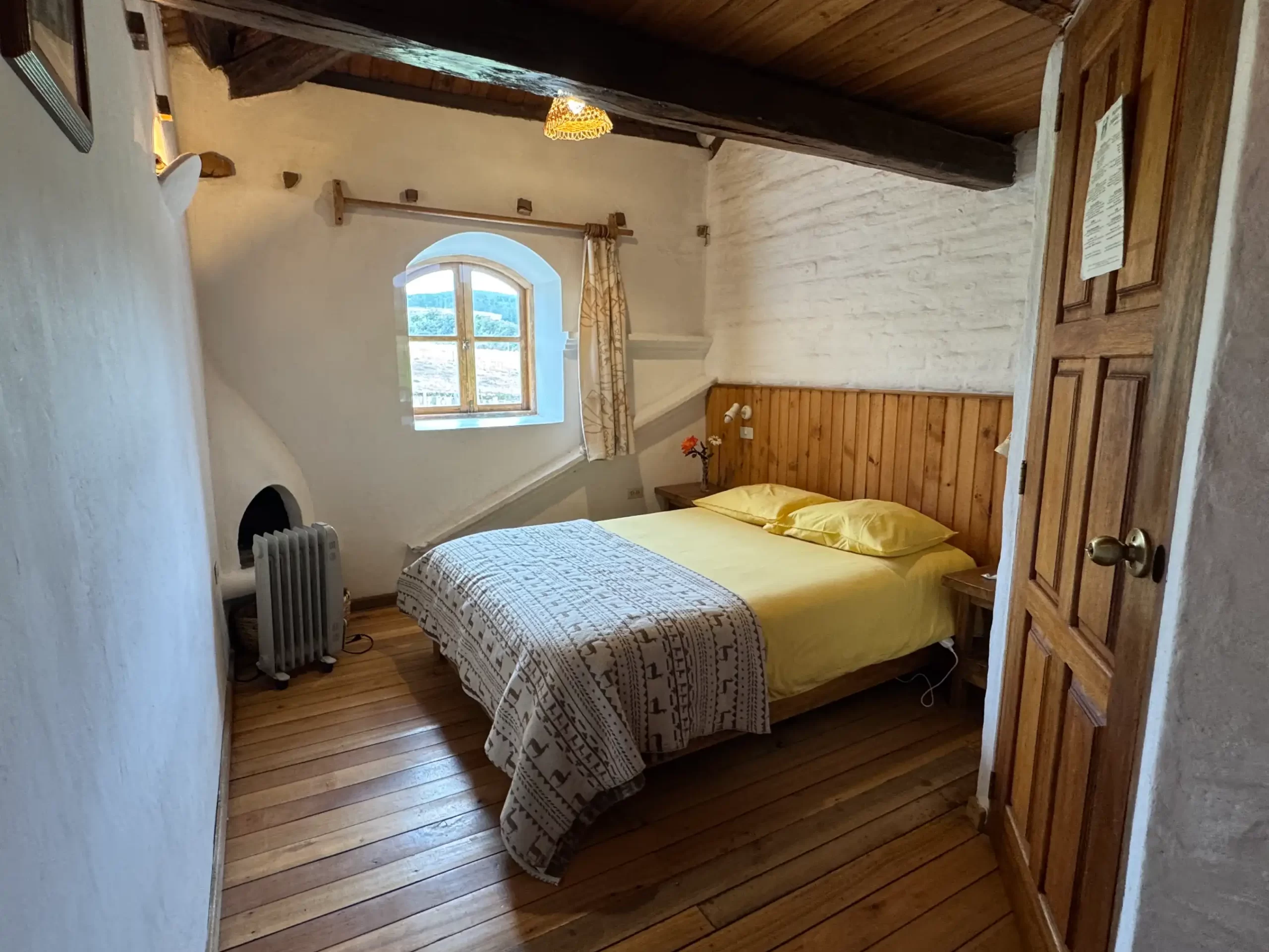 Nuestra habitación matrimonial estándar ofrece un ambiente cálido y rústico, perfecto para parejas que buscan descanso y tranquilidad. Está equipada con una cómoda cama matrimonial con calientacamas eléctrico, decoración acogedora y un baño privado con ducha de agua caliente, toallas y secador de pelo. Un espacio pensado para disfrutar de una estancia confortable en el entorno natural de Cuello de Luna.